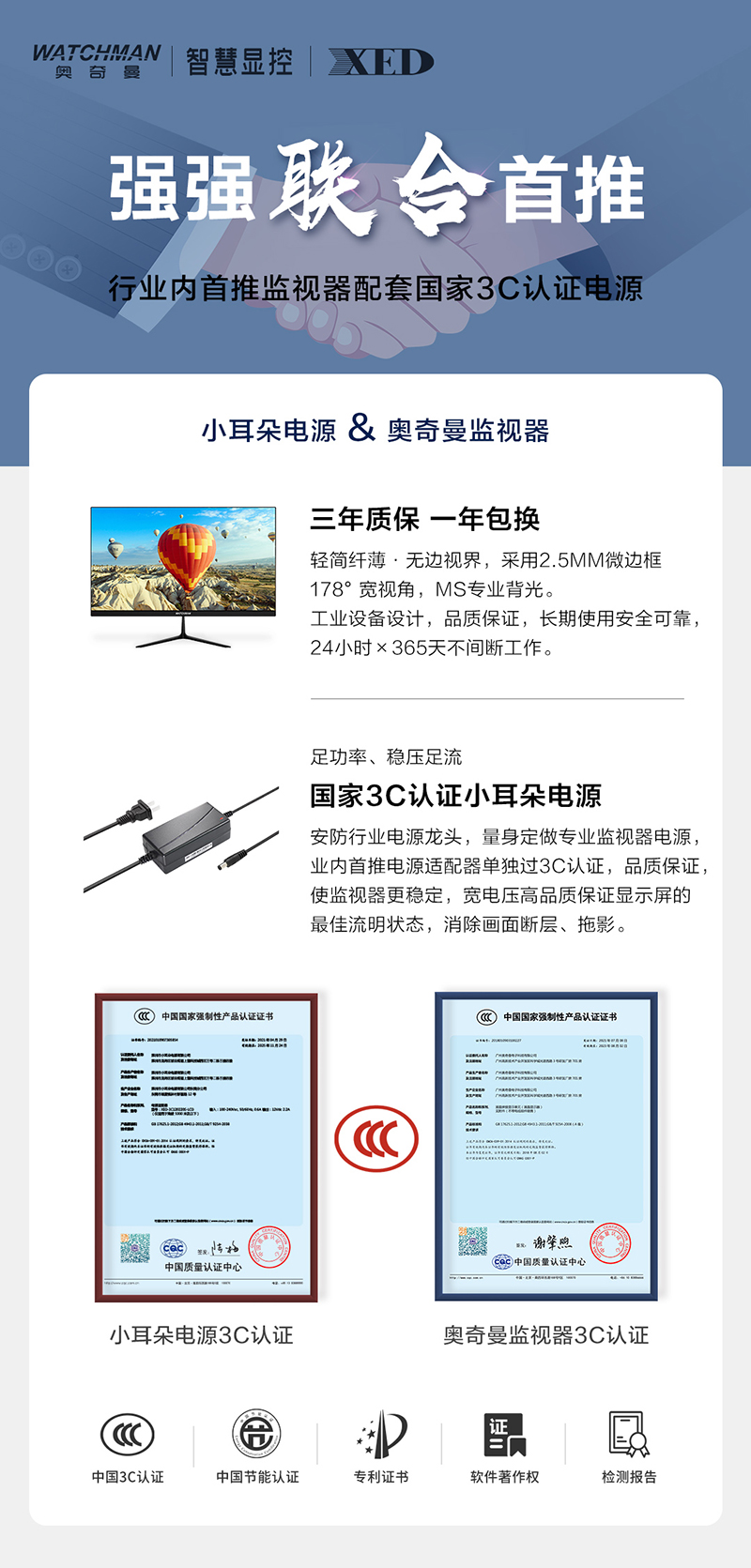行業(yè)內(nèi)首推監(jiān)視器配套國家3C認(rèn)證電源