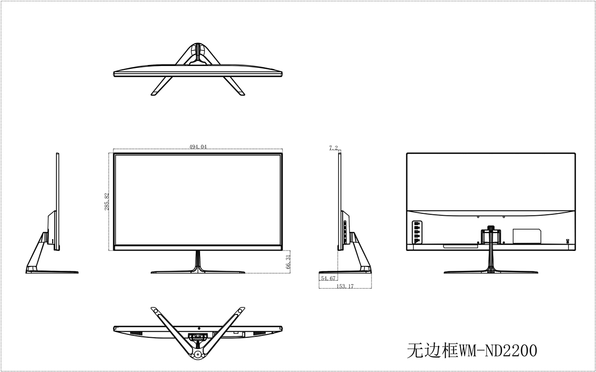 監(jiān)視器尺寸:494.04mm(W)×285.82mm(H)×7.2mm(D)不含底座