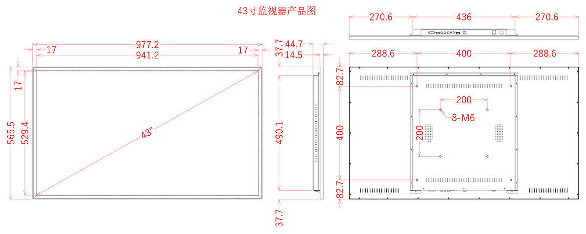 監(jiān)視器尺寸(mm):977.2mm(W)×566.5mm(H)×44.7mm(D)不含底座