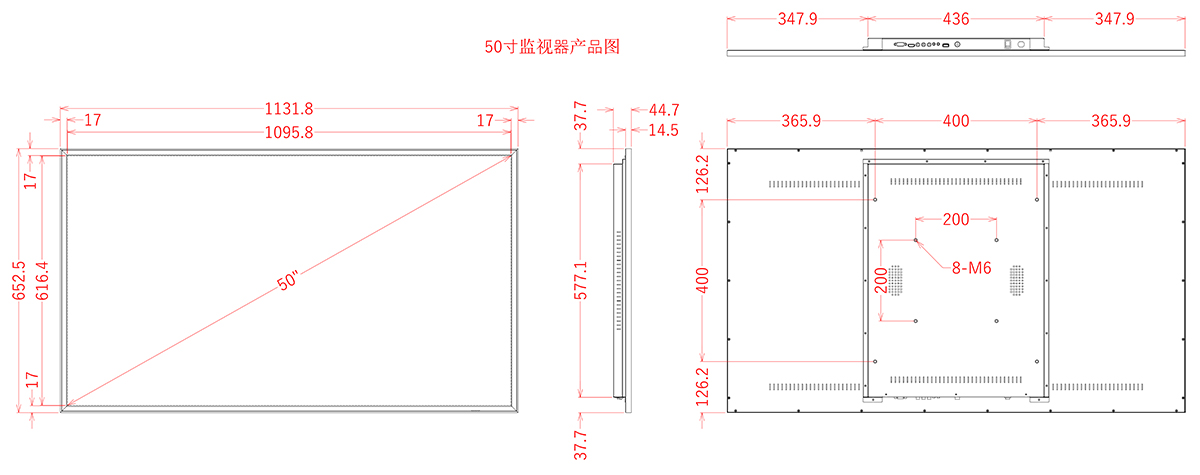 監(jiān)視器尺寸(mm):1131.8mm(W)×652.5mm(H)×44.7mm(D)不含底座