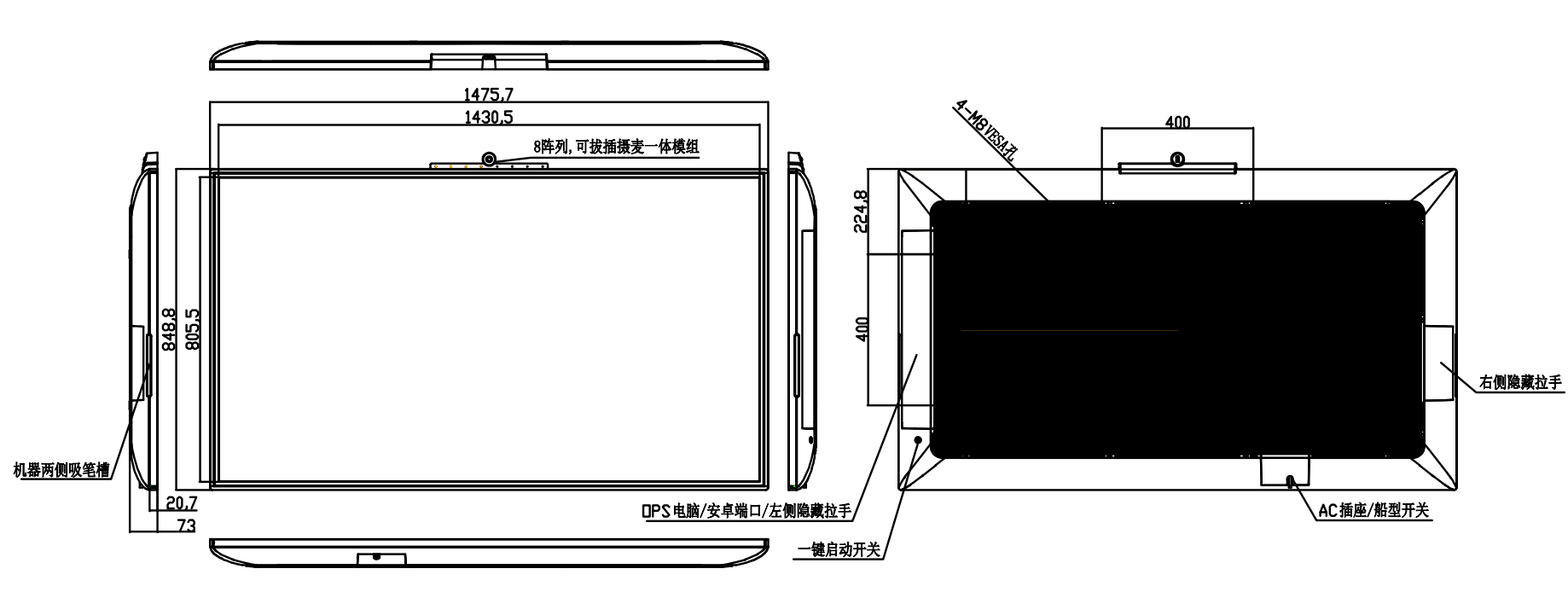 1475.7(長)x 848.8(高)x 73(厚)mm |