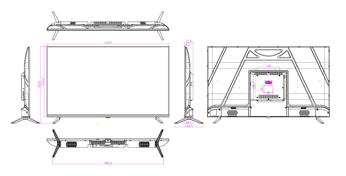 監(jiān)視器尺寸(mm):1110.9mm(W)×644.2mm(H)×77.8mm(D)