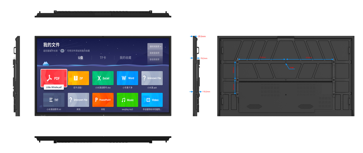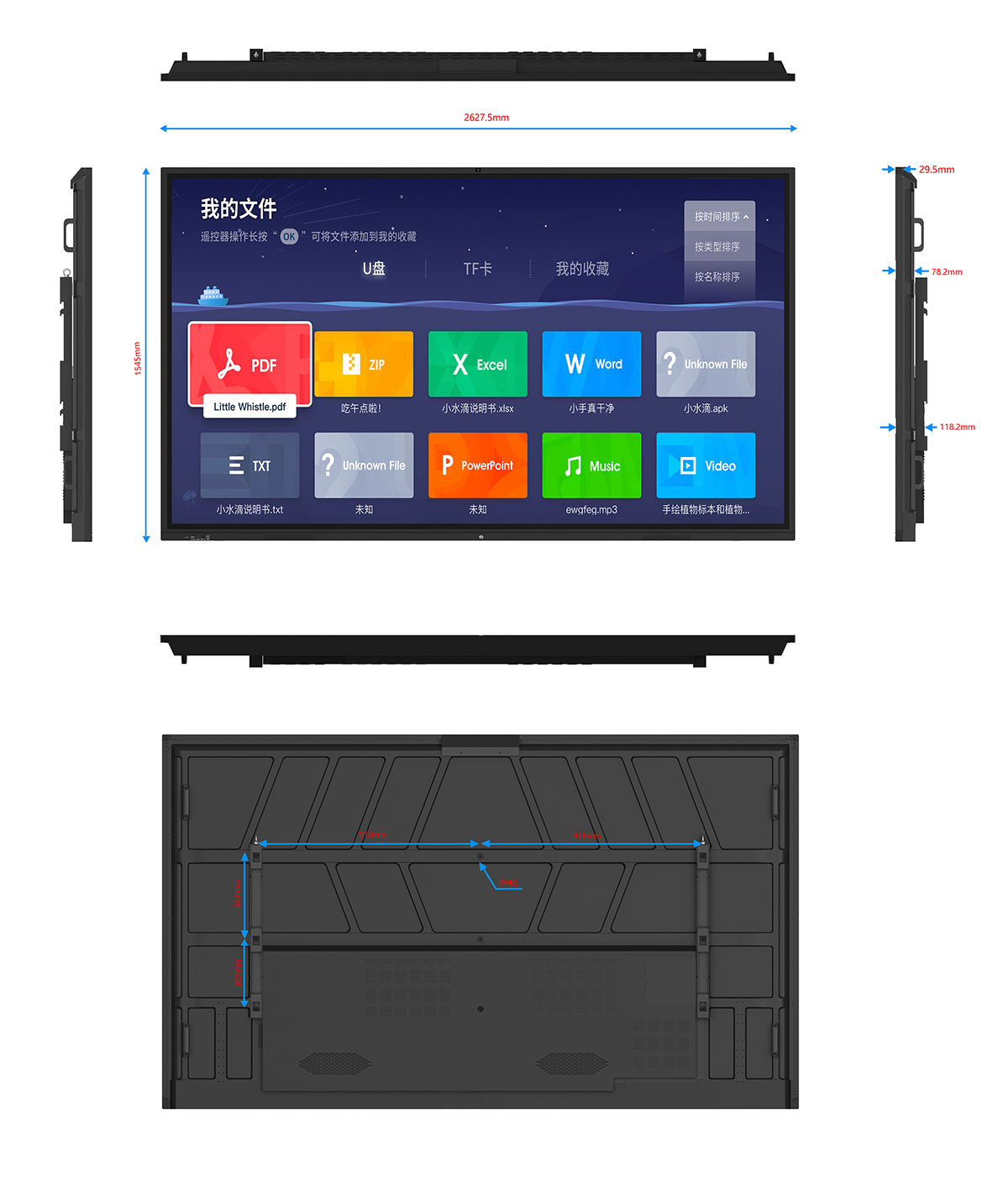 2627.5mm*130mm*1545mm (產(chǎn)品外形對(duì)角線尺寸:120寸) |