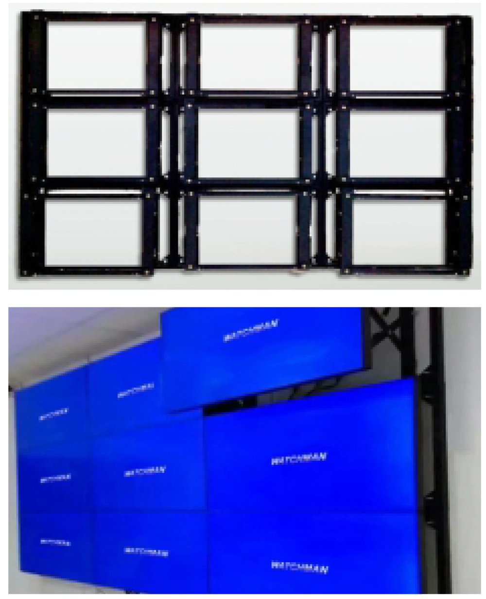 前維護壁掛支架:適應(yīng)1.8/0.88/3.5拼縫拼接,按每塊屏X單價計算,后座采用2.5mm厚鋁型材。四個角皆安裝自動卡扣,結(jié)實耐用,選用合適力度液壓伸縮桿,避免損壞屏。每塊屏皆可單獨正面推入和彈出,方便維護。(選配包邊+150元/單元)(55寸以下單價)